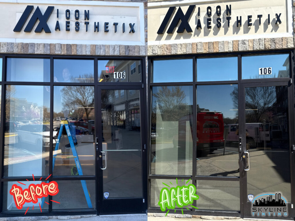 Reducing the solar heat and glare while maintaining the view inside for foot traffic. -Virginia Beach, VA